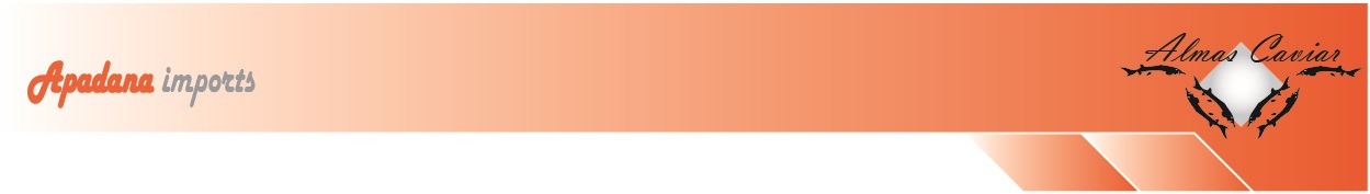 Apadana Imports, distributor of Almas Caviar, offers a full-range of sustainable Caviars. Almas Caviar is a leader in sustainable sturgeon production. Using proprietary tank-farming methods, we have significantly reduced the pressure on declining wild stocks. Coupled with water from natural aquifers and recycling programs, we truly offer a “Green” alternative to the luxury of Caviar with no compromise.